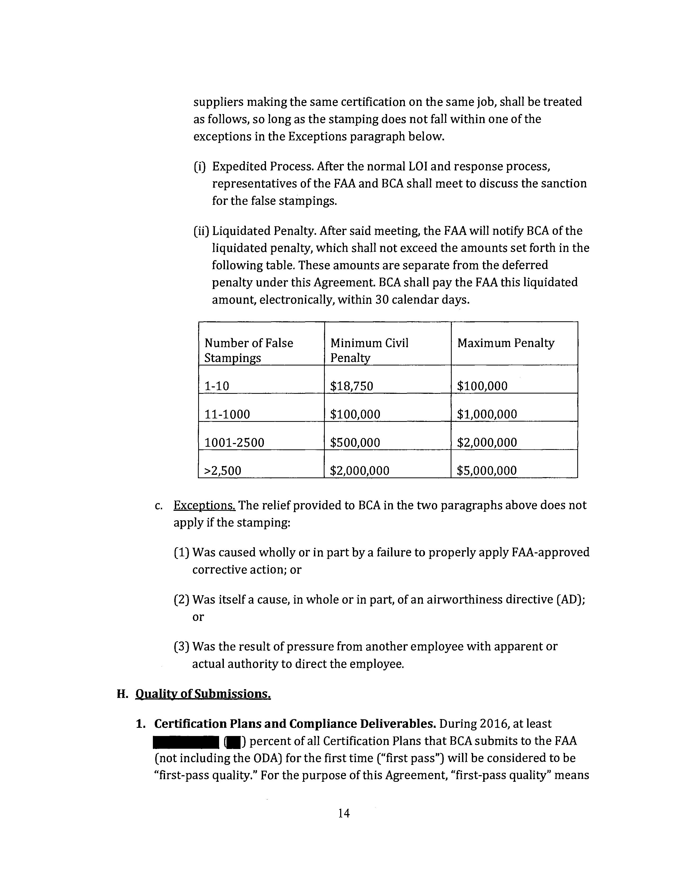 4.3 The parties agreed that Boeing should implement sustainable, enduring corrective actions to address the root causes of certain regulatory violations and to prevent similar future violations. And that regulatory compliance was critical to the quality and safety of aircraft products.