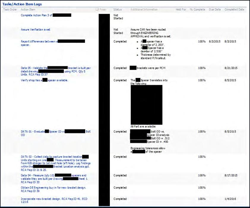 FIGURE 10: EXAMPLE OF AN ACTION-ITEM LOG, PROPRIETARY INFORMATION HAS BEEN REMOVED