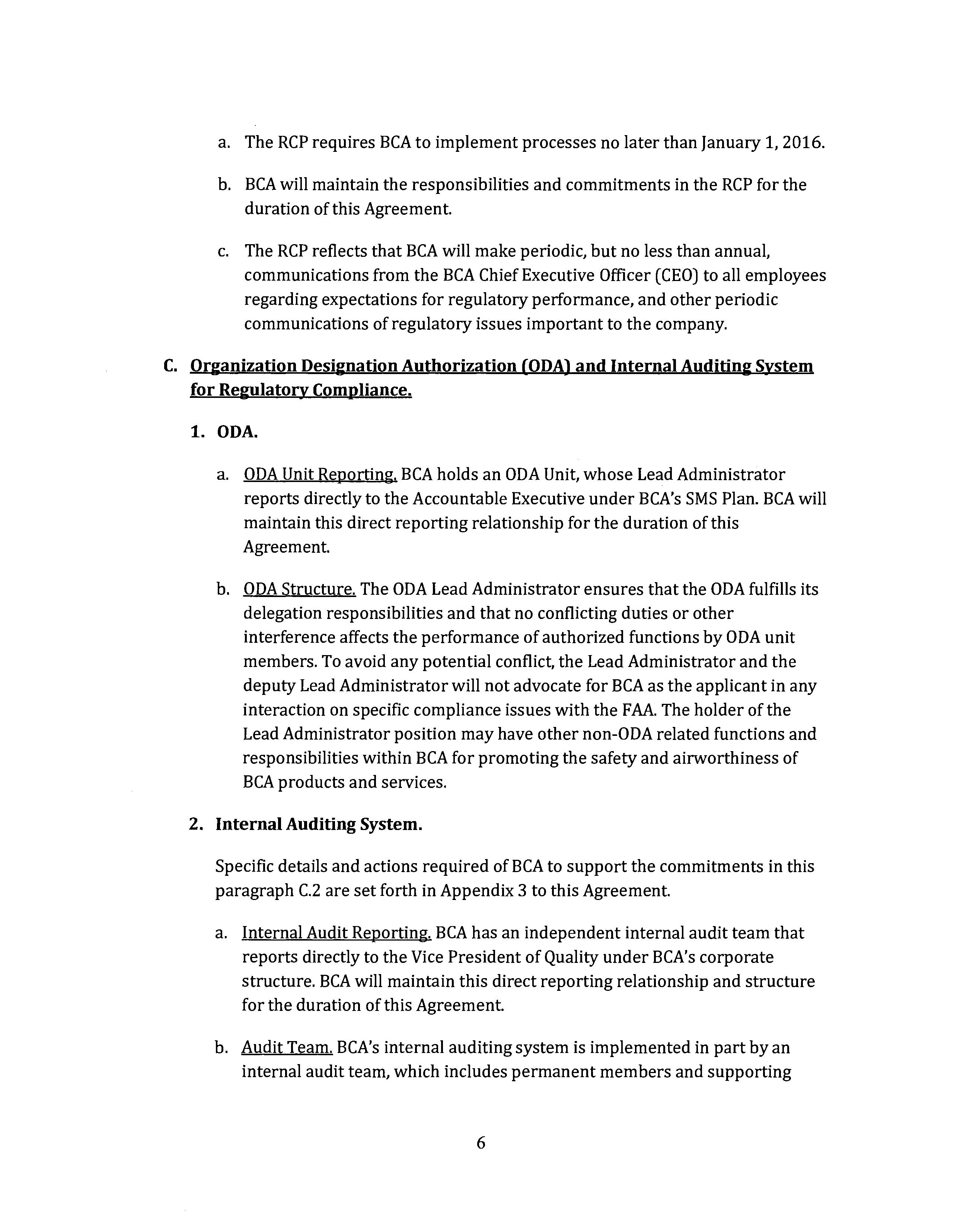 3.5 To fulfill its legal obligations under the 2015 FAA Agreement, Defendant Boeing adopted the Regulatory Compliance Plan (RCP) to increase the focus and prioritization of its management on regulatory compliance and to prevent noncompliance.