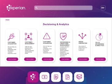 Experian Kiosk app a digital tool that provides a user-friendly interface to showcase information about a company profile. Installed on a standalone kiosk inside a tablet. An effective way for companies to create a digital presence and communicate their messaging to a wider audience by providing a convenient, interactive, and engaging platform for users, companies can enhance their brand image and stand out in a competitive market