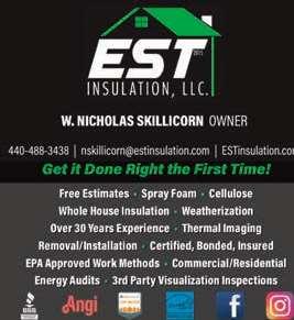 MaximizeYourHome'sComfort Level&EnergyEfficiency InsulationRemoval&Installation|SprayFoam&Cellulose LowerEnergyBills|ImprovedAirQuality|MoldProtection LocallyOwned|30+YearsOfExperience ESTInsulation.com|440.488.3438 Free Estimates CallToday440-479-2117 GreatLakesGuttersLLC.com SeamlessGutters&Downspouts•GutterGuards&Repairs Roofing&Repairs•CustomFasciaWraps&Soffits 440-479-2117|GreatLakesGuttersLLC.com ProtectYourHomewithourProvenGutterSolutions ProudlyServingNEOhioforOver20Years Scanhereforyour freeestimate! NoMoreGutterCleaning!