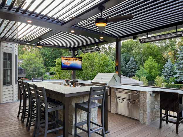 kitchens and dining spaces, every project is a tailored experience. One of their most sought-after installations is the Struxure Louvered Roof Pergola, a smart, stylish way to enhance time spent outdoors, rain or shine. Their excellence in design and execution has earned them five international design awards and the exclusive Struxure Partner Company designation in the Chicago market, underscoring their commitment to innovation and quality.