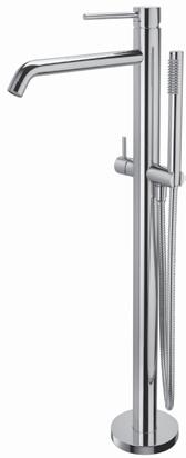 Ligro ettgreps frittstående badekar-/ dusjbatteri for gulvmontering. Komplett med 1,5 m dusjslange og hånddusj. Fås i krom, matt sort og oksiderende messing.