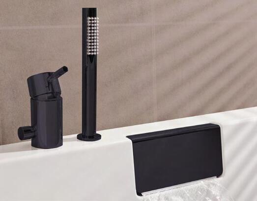 rund ettgrepsarmatur med hånddusj i matt svart til montering på badekarkant.
