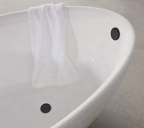 Frittstående badekar, med runde utsparinger som skaper en fin og enkel kontrast. Skiller seg ut med sitt kontrastrike og kvalitetsbevisste utseende, som gir en ekstravagant og stilig badeopplevelse.