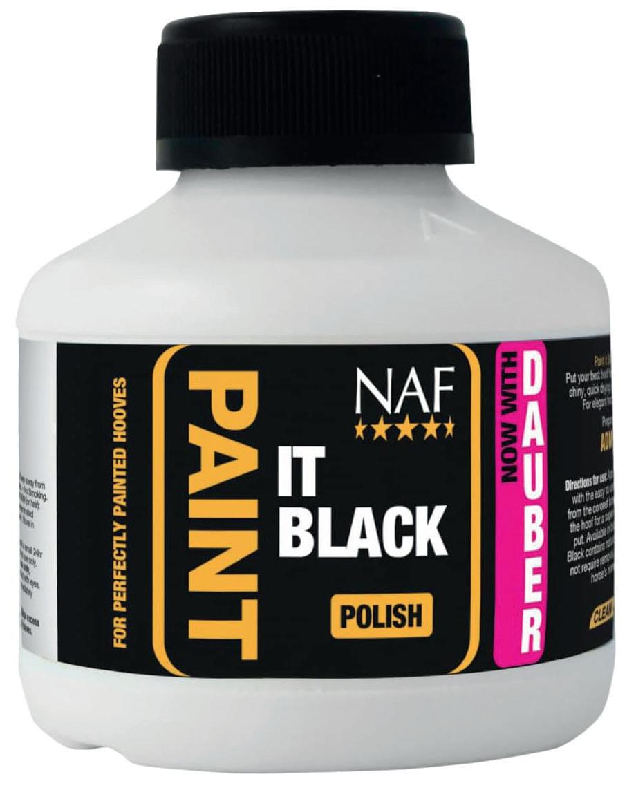 Apply to clean dry hooves with the easy to use brush applicator. Paint from the coronet band down to the wall of the hoop for a superior shine which stays put. Paint it Black contains natural Shellac which does not require removal, rubbing off with the horses normal activities.