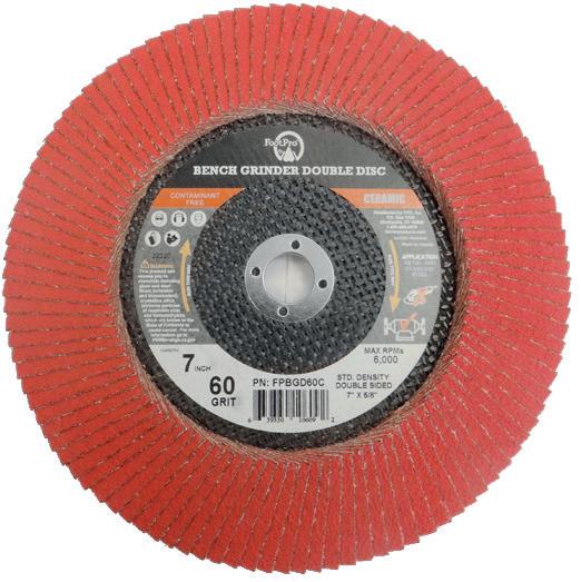 Available in 40- or 60-grit, it fits any grinder with a 5/8” spindle. For use on a Baldor Machine, the FPD Heel Finish Disc Spacer (sold separately) is required.