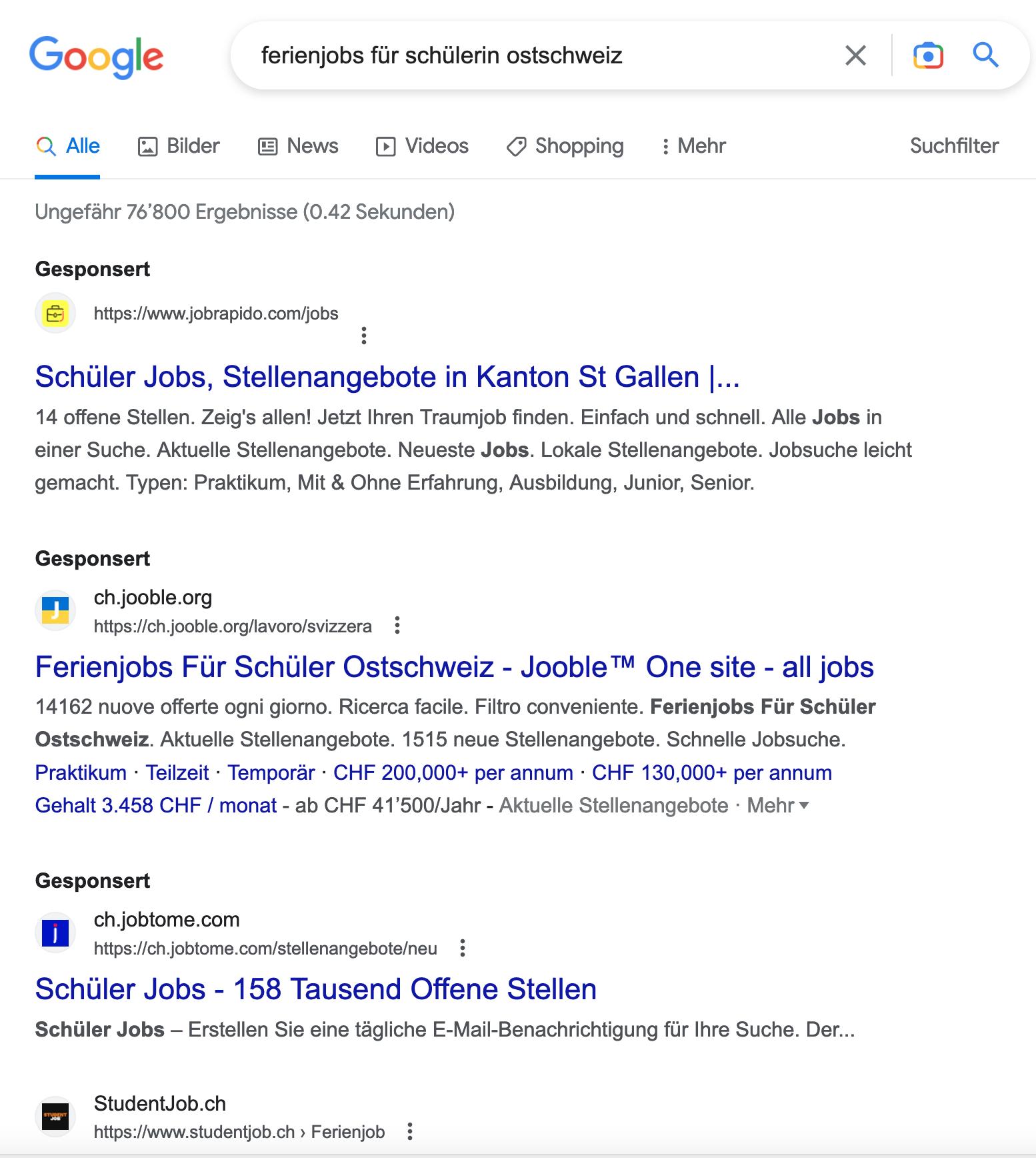 Abb. 2 Giulias Google-Anfrage zu Ferienjobs
