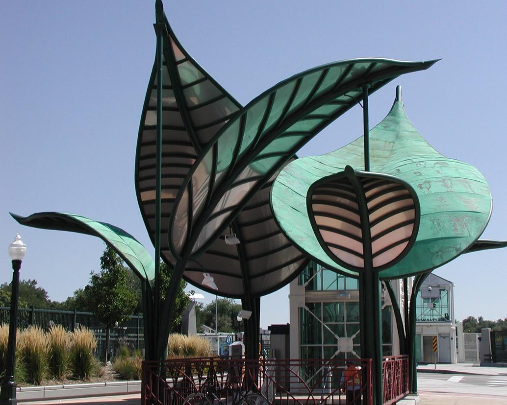 Salas O’Brien provided structural engineering for this canopy at the Louisiana-Pearl Light Rail Station Plaza. Large steel leaves with copper sheathing over stainless steel work together to provide a solid, artistic canopy over the stairwell. The project won a Denver Mayor’s Design Award, and the canopy’s iconic shape has become a landmark along I-25.