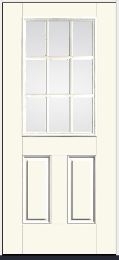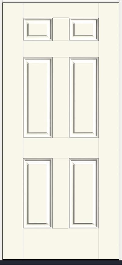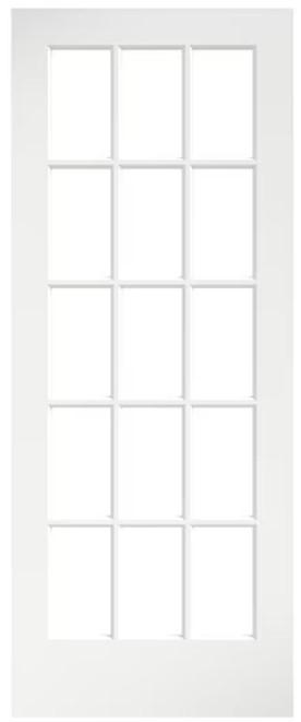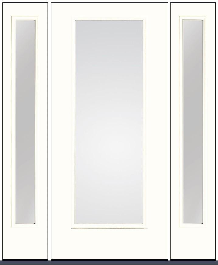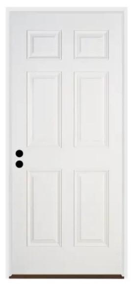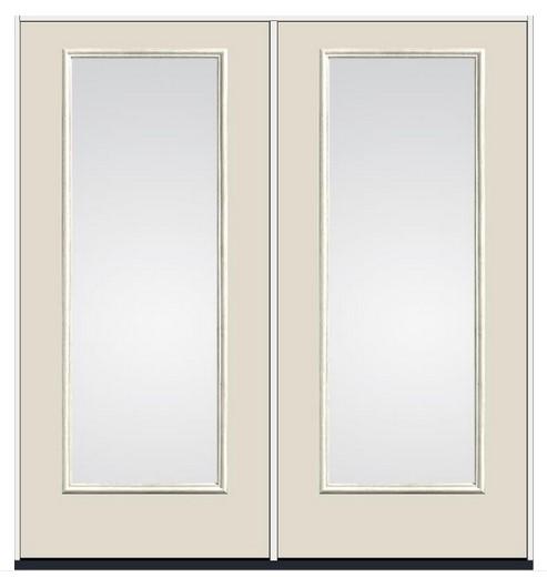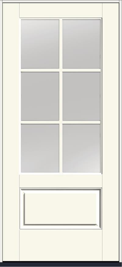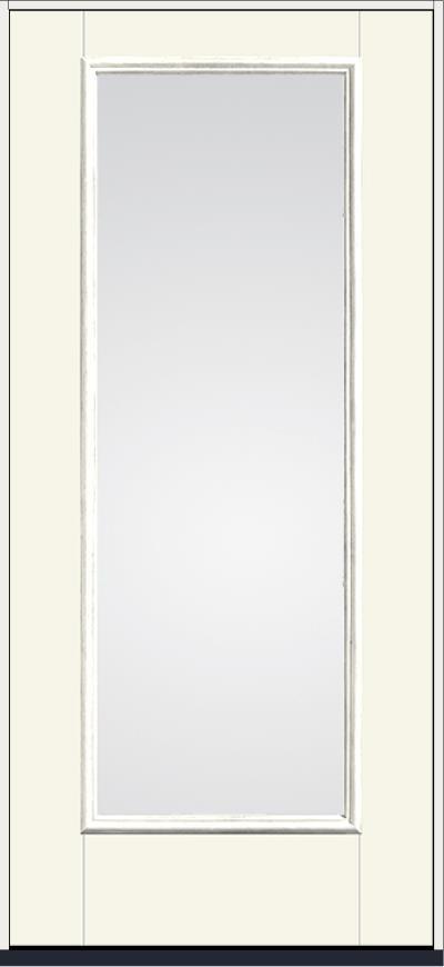 S206 36” Wide X 80” Tall Smooth Star Fiberglass 1 Lite Door with primed jamb and threshold cover in white.