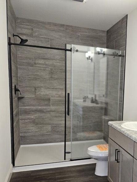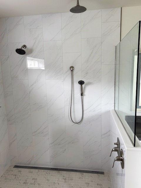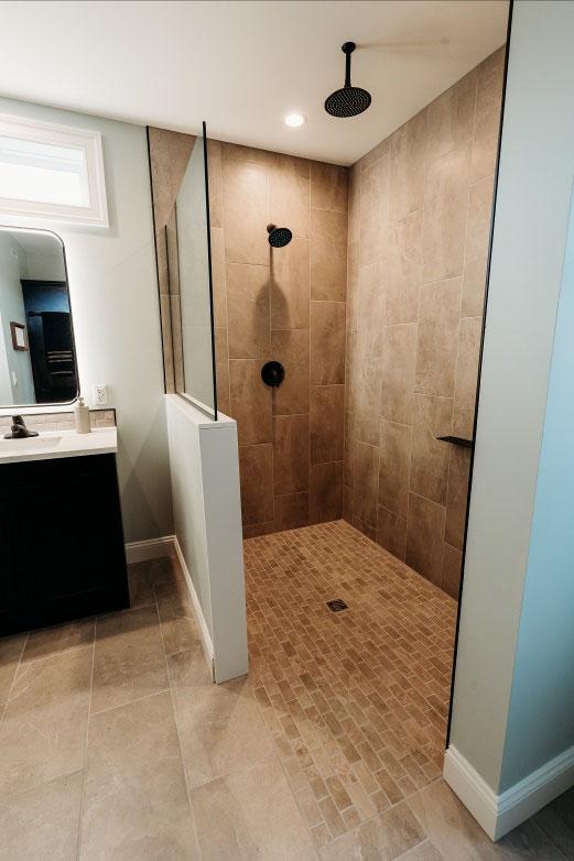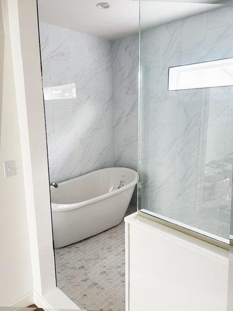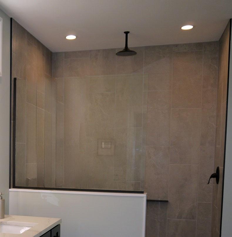 Zero Entry Shower, 4’ x 6’ Glass Panel, Tile Shower (Showing vertical tile)