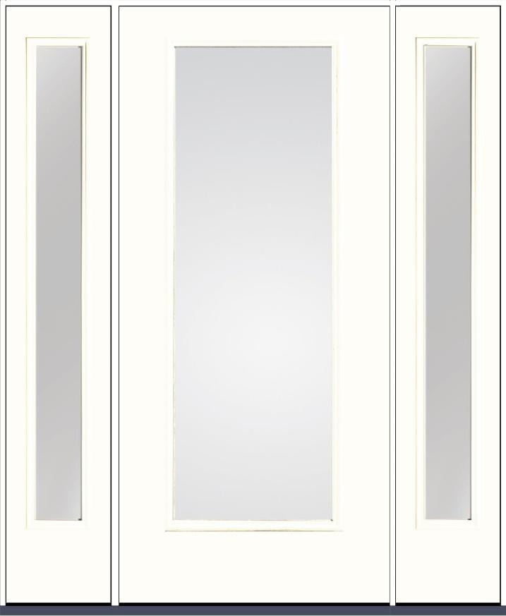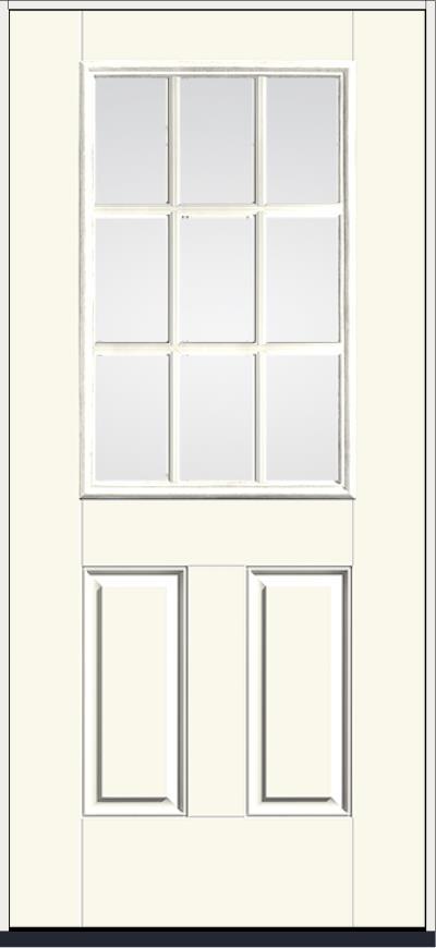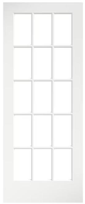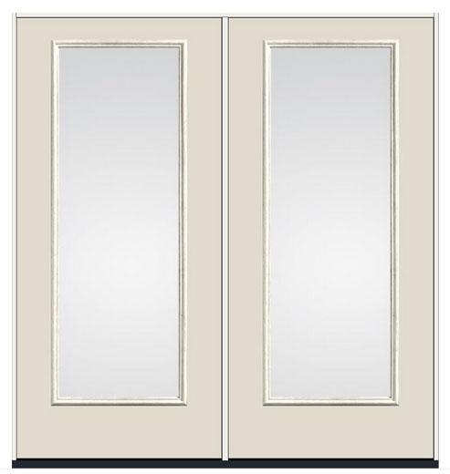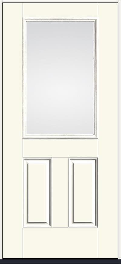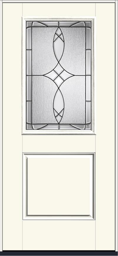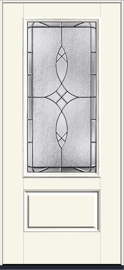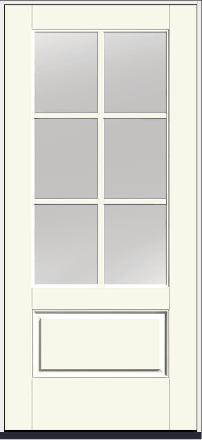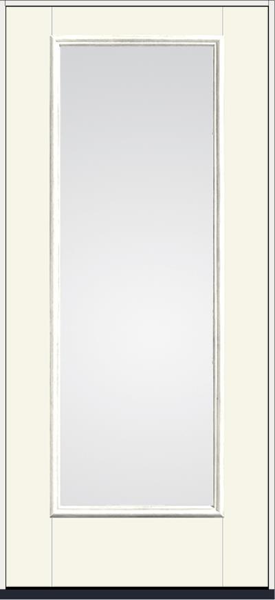 S206— 36” Wide X 80” Tall Smooth-Star Fiberglass 1 Lite Door with primed jamb and threshold cover in white.