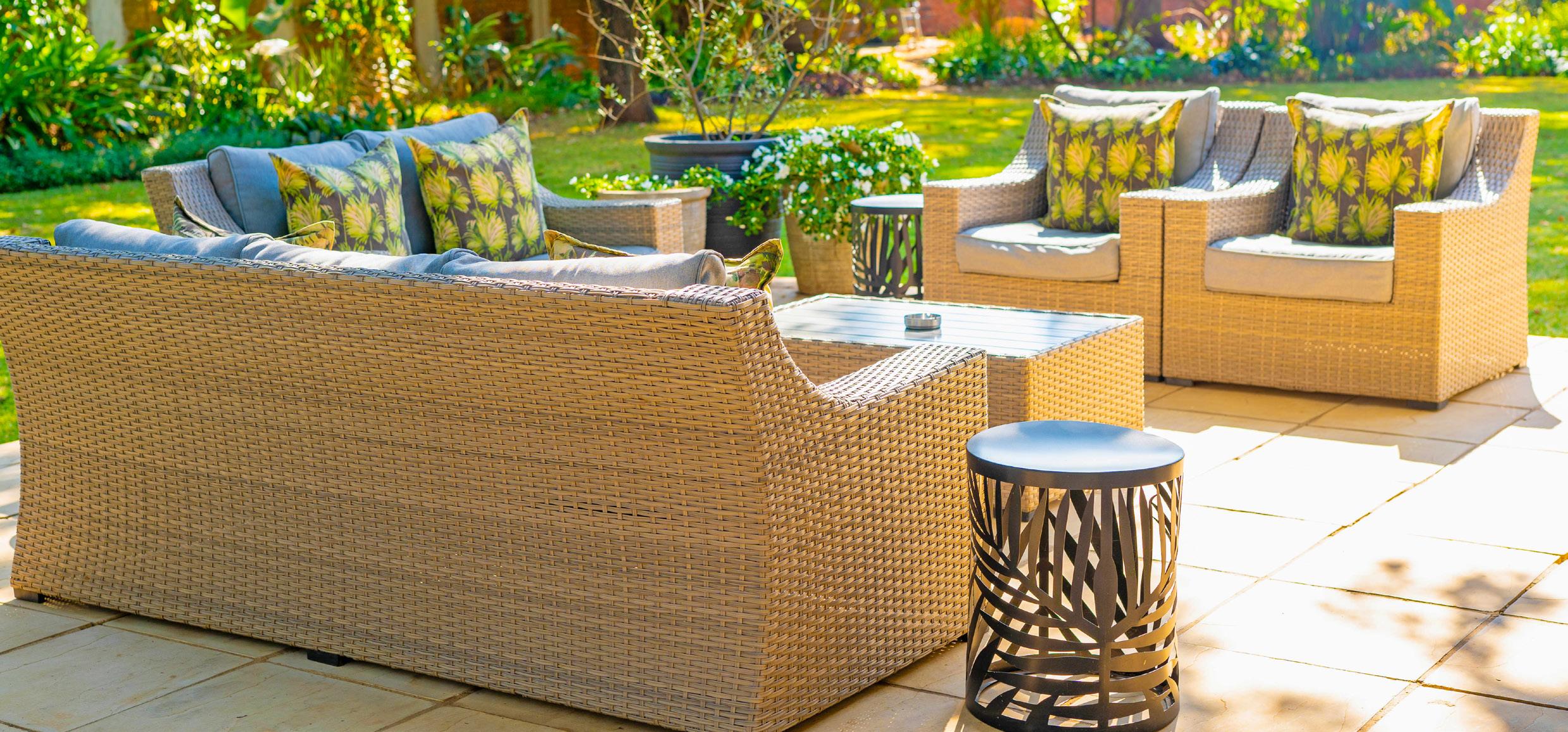 A high brick wall ensures privacy and security and shelters the lush garden with well-established trees and manicured lawns. The garden also has a sparkling pool and various options for outdoor dining or just chilling with afternoon tea or a sundowner cocktail.