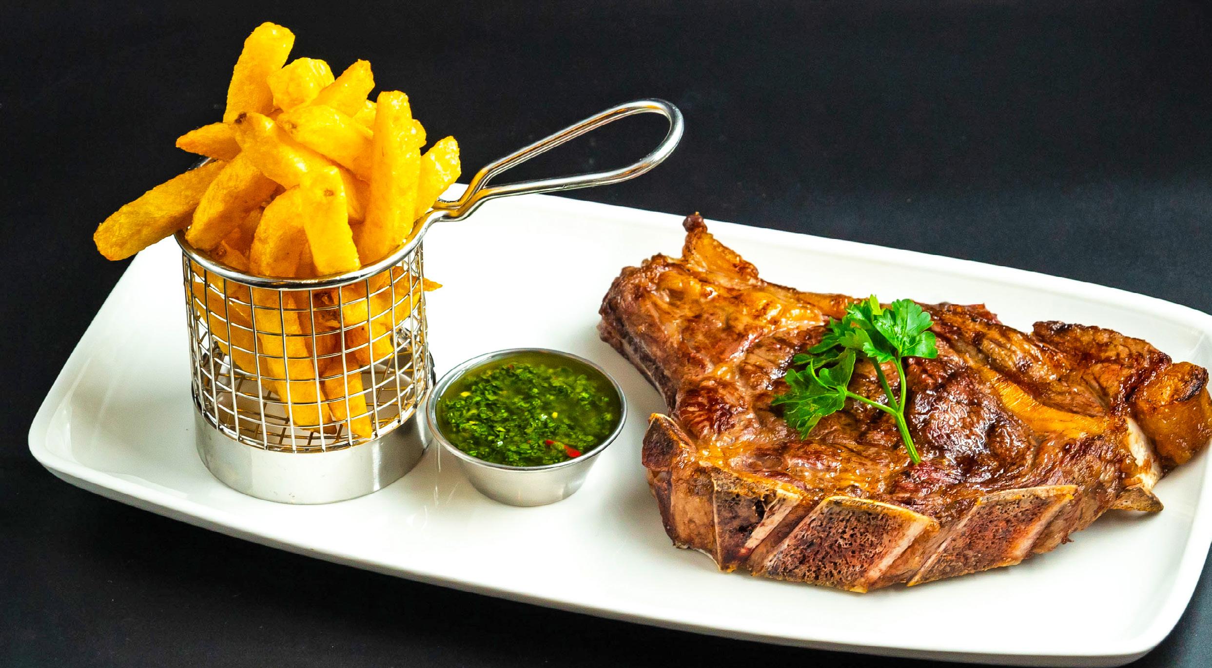 The menu is a carnivore’s delight, fea turing dishes such as Steak and Eggs, Sausage and Eggs, and the signature Chop Chop Omelette.