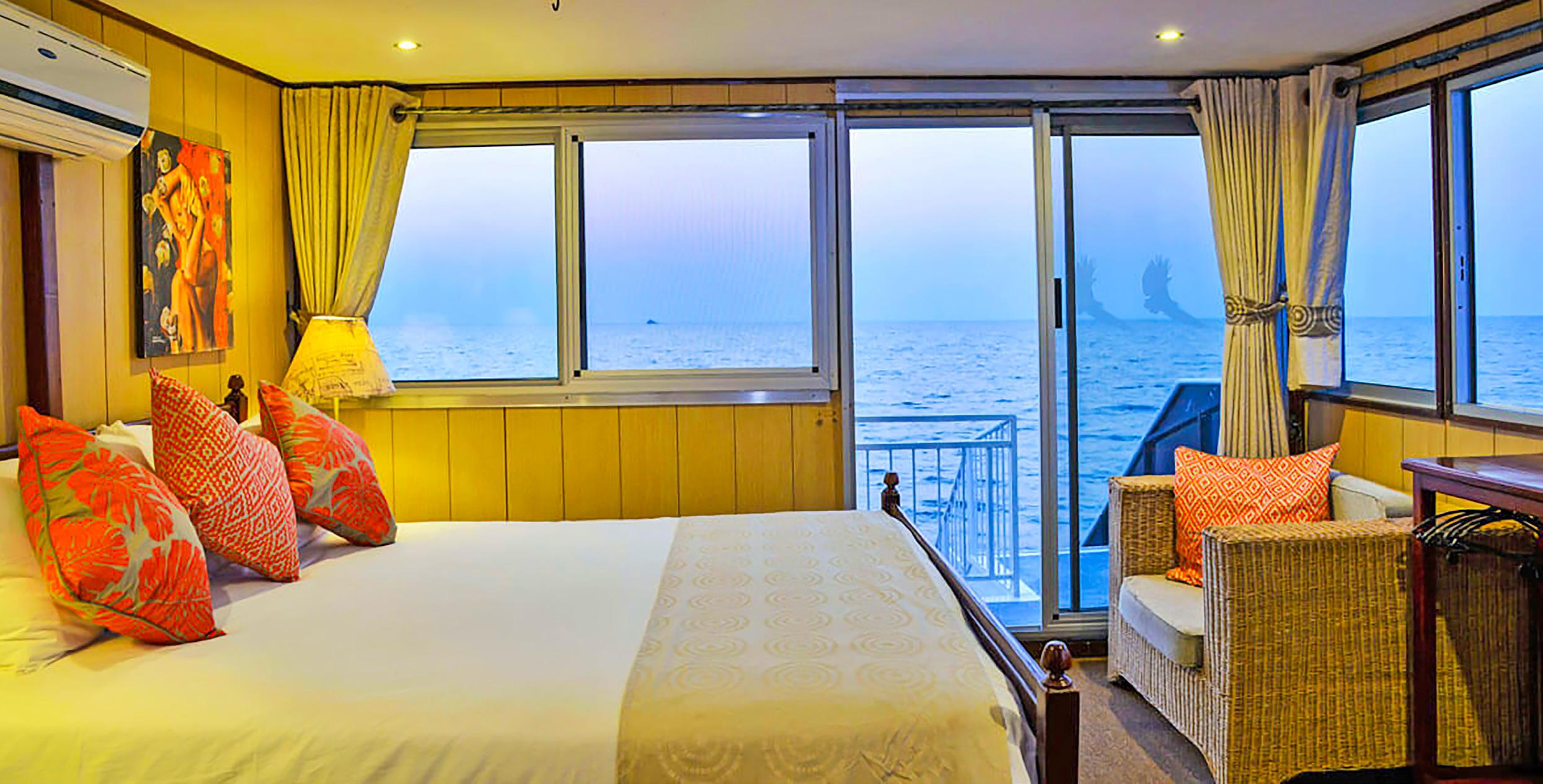 The retreat has seven rooms, all air-conditioned waterfront chalets, fitted with a single king-size bed and two three-quarter beds. Guests can sleep between 3 and 4 people.