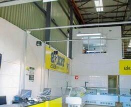Inside the 2,400 square metres, the store utilizes a modern, warehouse-style layout with high, truss-supported metal roofs and bright strip lighting.