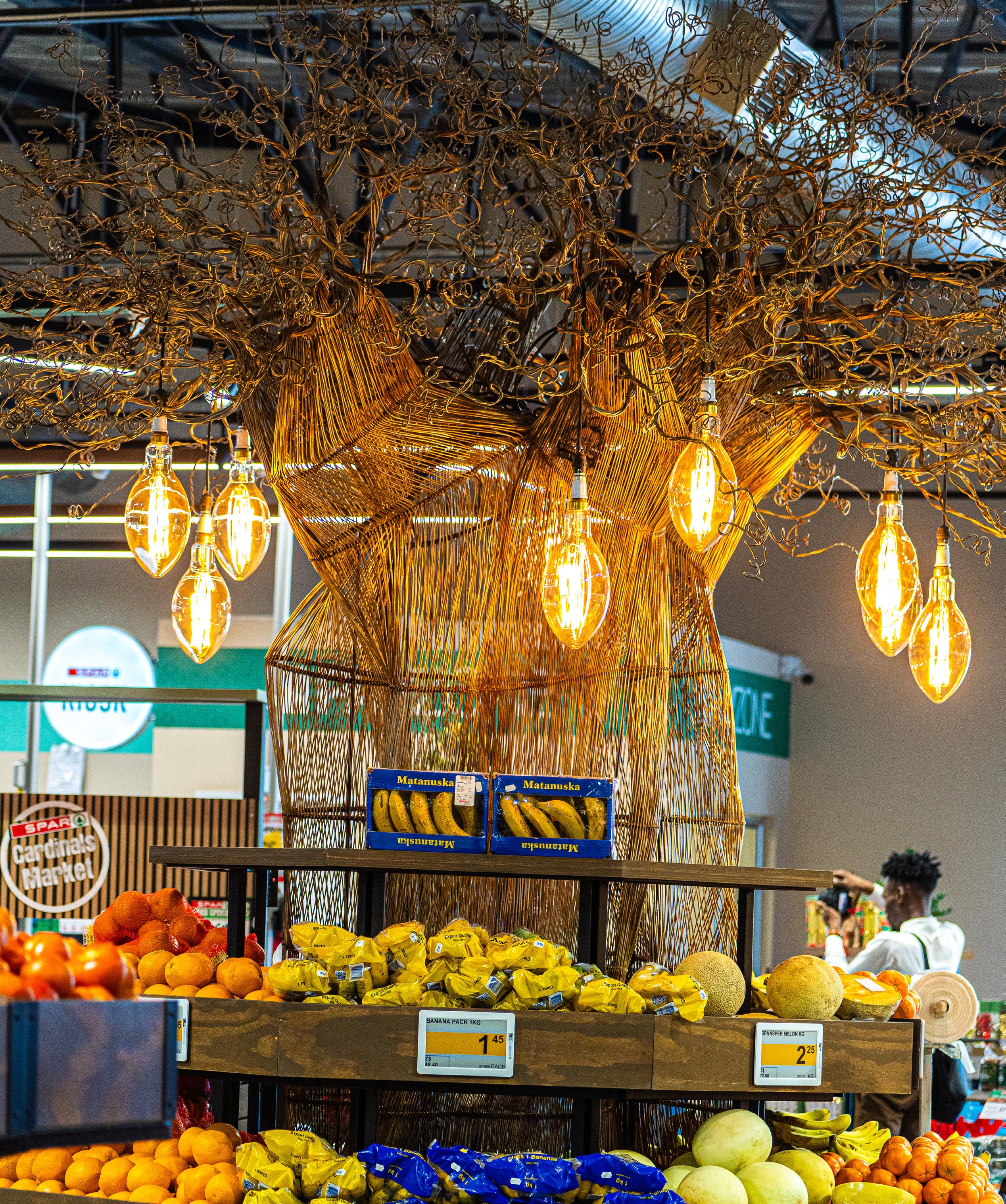At the entrance, the store's "vibrant, interactive marketplace" concept culminates in a masterful sculpture by local artist Ignatius Ornaments, simply entitled "The Baobab." This focal art piece powerfully celebrates the cultural and practical significance of the Baobab in Zimbabwean tradition, serving as the ultimate visual cue for the store's "local" brand positioning and its commitment to sourcing local wherever possible.
