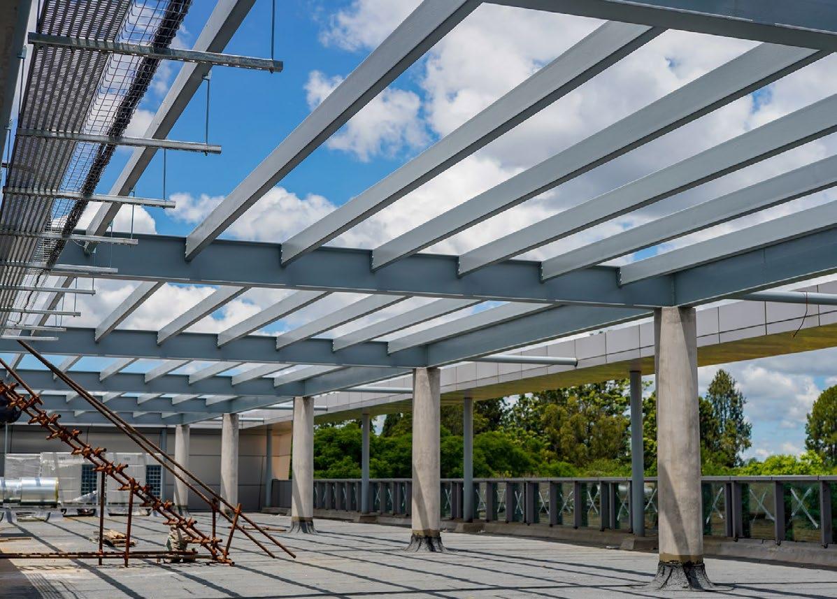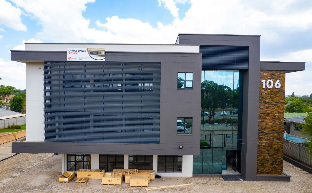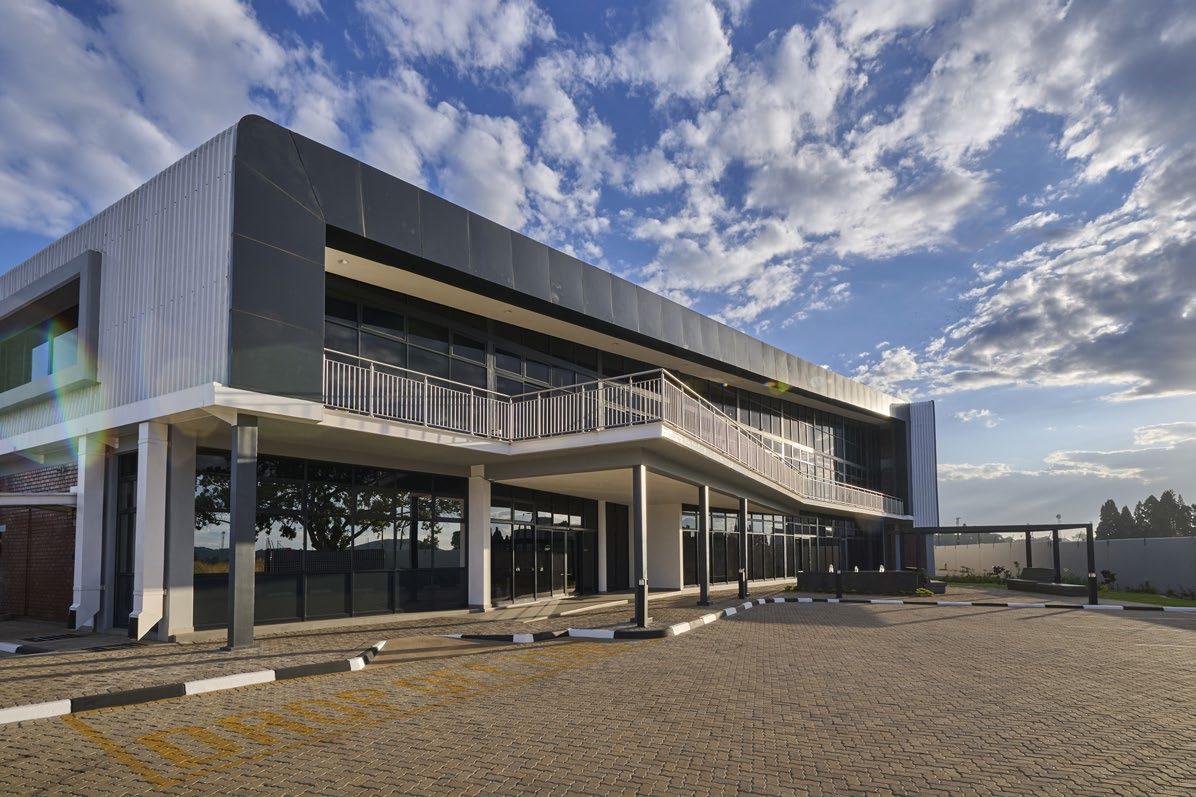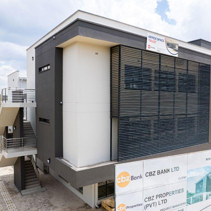 Dulux Pearlglo Water-Based is specifically designed for these demanding environments, offering a tough, mid-sheen enamel suitable for various surfaces, including metal and plaster. By combining the durability of traditional enamel with the benefits of a modern, low-VOC, waterbased system, it ensures that infrastructure remains resilient and sustainable.Urban renewal is further exemplified by the new CBZ Bank complex in Eastlea. Managed by CBZ Properties with a creative vision from Metamorphosis AIDPM, this transformation of an underutilized space into a sleek, multistory office block, highlights contemporary identity through expert glazing and light-grey composite cladding.