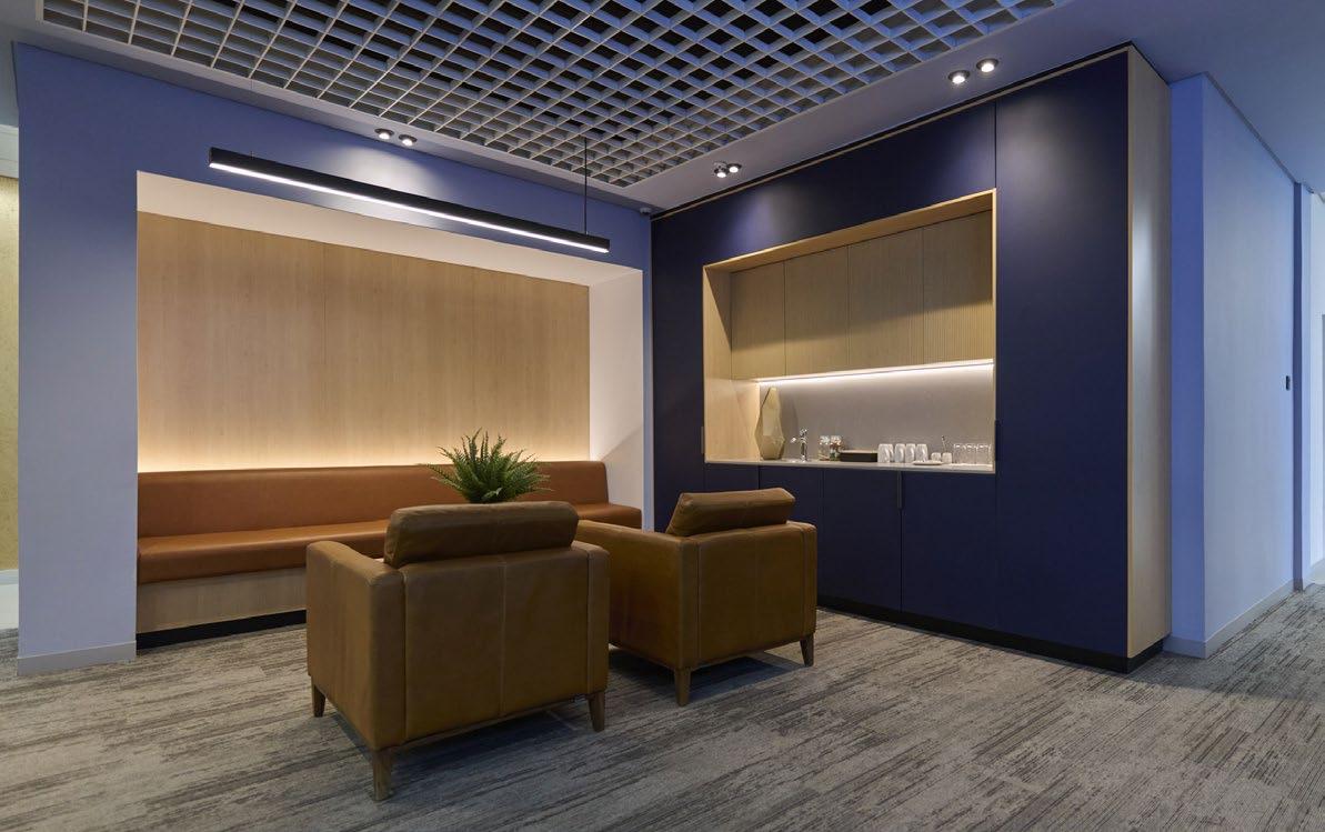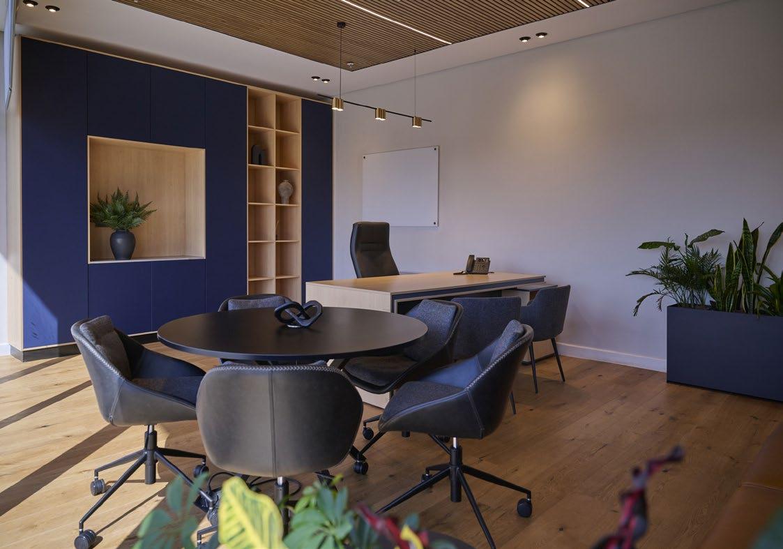 The interior planning is guided by an open and collaborative workplace strategy. Through the introduction of strategically positioned open zones, the layout achieves a high degree of visual transparency, enabling clear sightlines across the floor plate. Importantly, the design deliberately limits the number of offices enclosed.