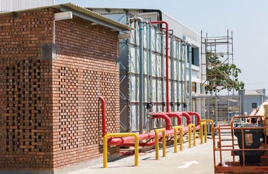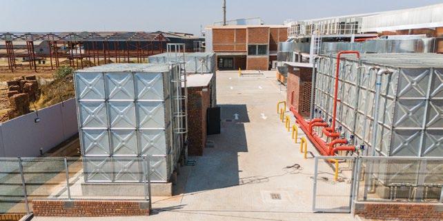 Ecobank Zimbabwe Limited’s Head Office exemplifies sustainable engineering through a closed-loop water management strategy that integrates an efficient internal reticulation system.