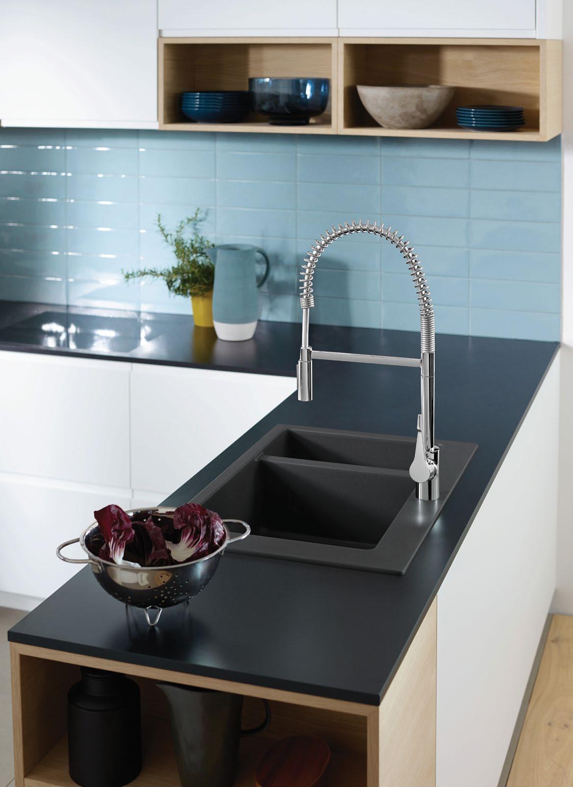 A top mounted basin completes the aesthetic with modern taps and fittings to complement the shower fittings. Two amber glass shades provide the lighting and add a q quirky and elegant interest to the space. The light fittings were sourced from Living Space in Arundel.