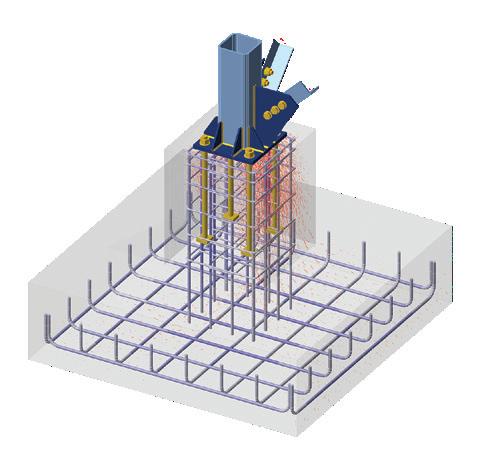 simplifications and guesswork. IDEA StatiCa Detail and Connection now work together to streamline this process. Engineers can simulate not only the base plate and anchors but also the entire reinforced concrete element, including rebar layout and interaction effects.