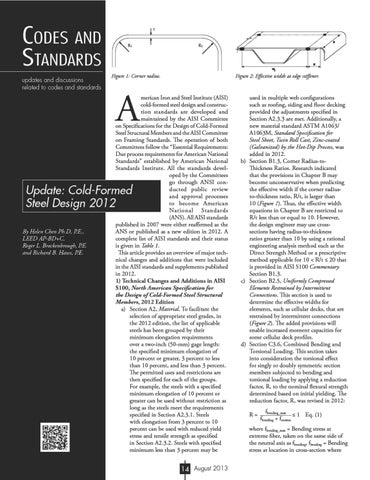 software, Appendix 1 provides a rational engineering analysis approach for determining strengths of cold-formed steel members. Provisions were added for members with holes, web shear strength and inelastic reserve capacity.