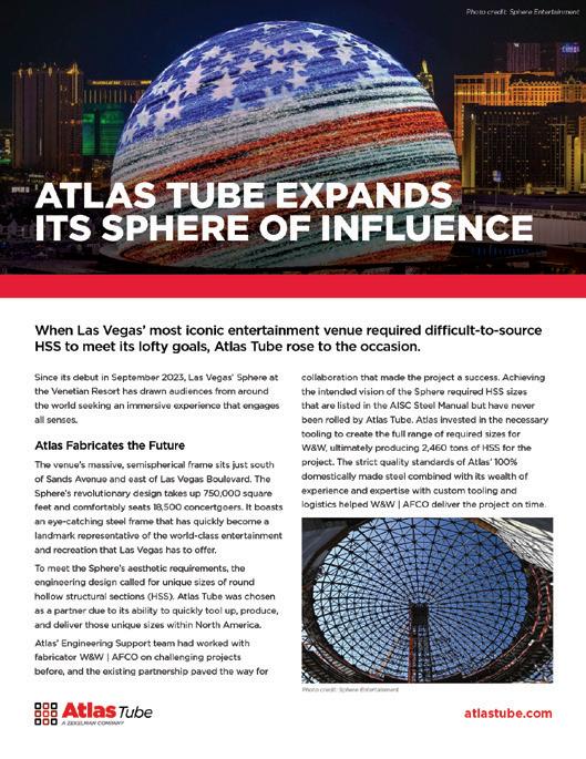 Scan for a downloadable copy of the project highlight. More on the design and engineering of Las Vegas’ Sphere is covered in Modern Steel Construction and Informed Infrastructure. To learn more about Atlas or to discuss your design ambitions, call 800.733.5683 or visit atlastube.com