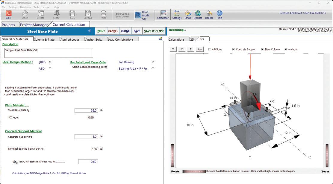 Description: Streamline the design and calculations of anchor and anchor bolts with ENERCALC. ENERCALC SEL can assist in determining loads and performing analyses of full structures and connected components through its Loads & Forces modules and its many analysis and design modules including the Base Plate by FEM module.