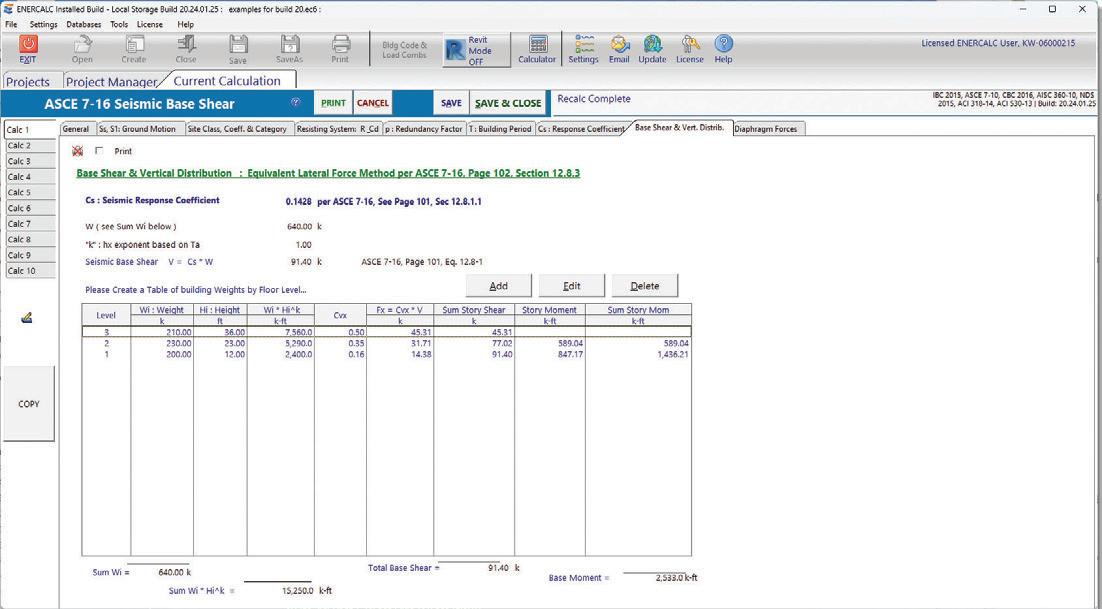 Description: ENERCALC automatically incorporates seismic loads in load combinations, including the vertical component, redundancy & system overstrength factors, as applicable. ENERCALC supports ASCE 7’s Base Shear, Demands on Non-Structural Components & Wall Anchorage. ENERCALC also includes earth retention wall modules - including substantial segmental wall improvements, & ENERCALC 3D FEM.