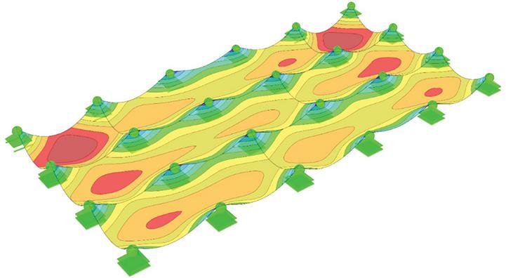The DG anchor head at both ends of studs arranged in a crucifix layout in the vicinity of columns ensures punching safety. Current knowledge of creep, and shrinkage of concrete and relaxation of prestressing reinforcement is adequate to predict long-term deflection of floors.■