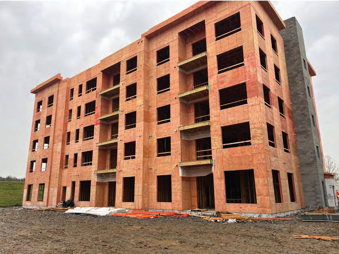 By Jared S. Hudson, PE, and Shaun M. Kreidel, SELight frame wood construction is often a desired construction method for low-rise multifamily structures due to readily available labor and materials, speed of construction, sustainability, and relatively low construction costs. A Type V construction classification as defined by the International Building Code (IBC) is commonplace for these structures; however, this construction type is limited to four stories of stacking wood construction. A Type III construction classification allows conventional wood-framed structures to include an additional level, bringing the allowable height to five stories above grade; see Figure 1 for an example of this type of construction. This construction type may be attractive to developers looking to maximize the occupiable square footage of a defined footprint while taking advantage of the many benefits that come with light-frame wood construction. To facilitate a Type III classification, unique structural and architectural detailing is