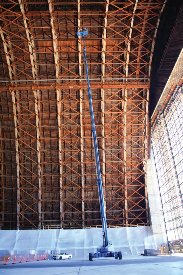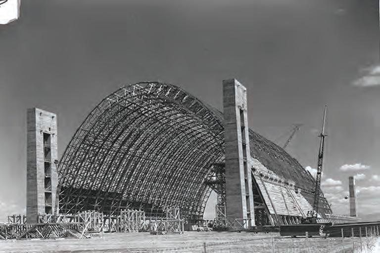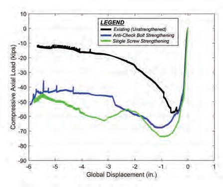 The seismic ductility and health monitoring of historic wood connections in a WWII airship hangar were enhanced using fully threaded screws.