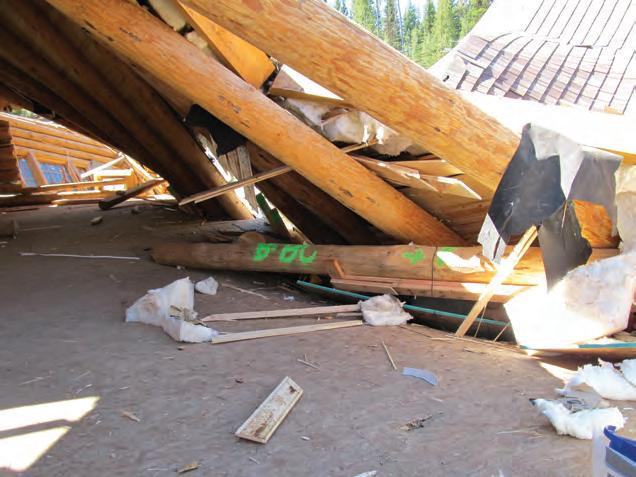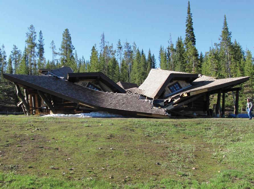 Despite adequate structural design and a less-than-design snow event, a scribed log- and sawn-lumber-framed commercial lodge structure experienced a catastrophic collapse less than two years after it was built.