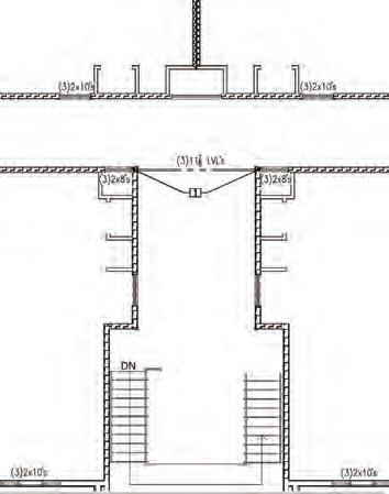 FRT treatment process results in sheathing strength reduction factors which can decrease both the allowable spans and the lateral strength/ stiffness of diaphragms or shear walls. FRT lumber treatment process also affects the structural properties of sawn lumber; the designer may need to augment the wall/header designs to mitigate these effects. Table 1 illustrates the strength reduction factors from two manufacturers of FRT sawn lumber. Assumed in-service temperature of the lumber is an important consideration that may cause variation in structural property values between manufacturers. High in-service temperatures of more than 100 degrees Fahrenheit will correspond to a greater reduction in strength and stiffness when coupled with fire retardant treatment. The engineer should also account for any wood incising reduction factors that might be needed to treat the lumber and consider using lumber that does not require incising to mitigate the amount of strength reduction. All minimum assumed FRT properties should be listed as design assumptions in the contract drawings to ensure that suitable lumber and WSP products are utilized. A designer may encounter situations where spans or loads require structural properties beyond what FRT lumber alone can provide. At this time, there are no fire-treated engineered wood products on the market (e.g., LVL, PSL, LSL) known to the author. One strategy available to designers is to utilize a flitch beam; a composite beam that consists of FRT wood laminations bolted to a continuous steel plate. The FRT laminations of the composite assembly will maintain the non-combustibility requirement; however, special attention to detailing to adequately conceal the heads of the bolts of the flitch beam assembly will be required. The designer should also consider