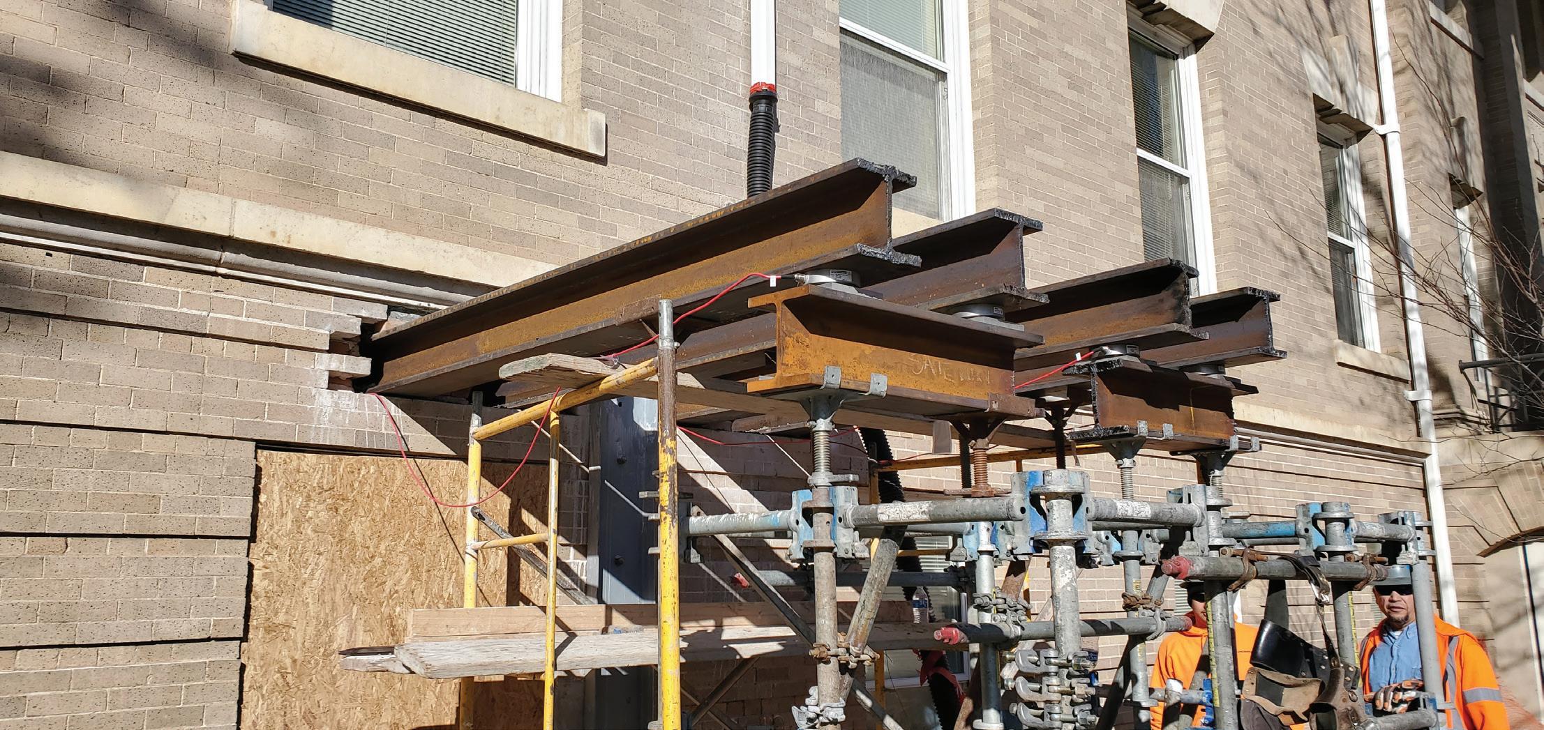 After an SUV damaged the wall of a historic masonry building on a college campus, innovative techniques were used to evaluate the damaged wall conditions and carefully provide temporary support during reconstruction operations.