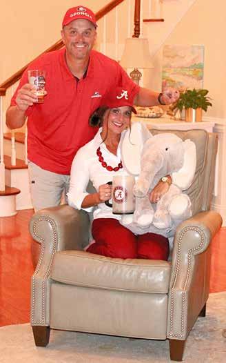 When it comes to holidays, the O’Rears go all out. Fall is their favorite time of year, as it marks the start of college football and the holiday season. With Courtney cheering for Alabama and Casey rooting for Georgia, game days are a spirited affair filled with friendly rivalry and delicious tailgating food. Halloween is also a major event in their household, with inflatables and kid-friendly decorations taking over the yard. Their home attracts trick-or-treaters from all over the neighborhood, offering a fun and colorful backdrop for photos.