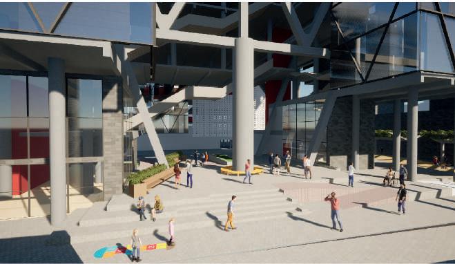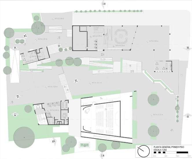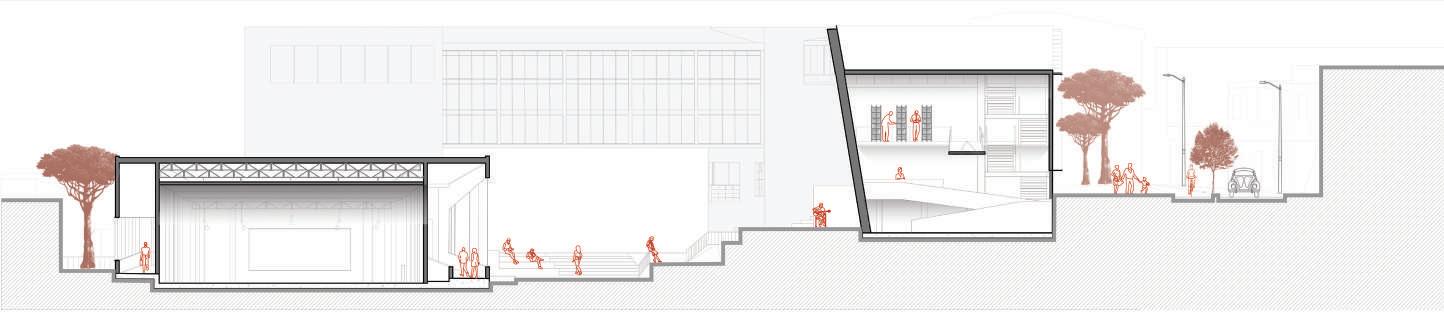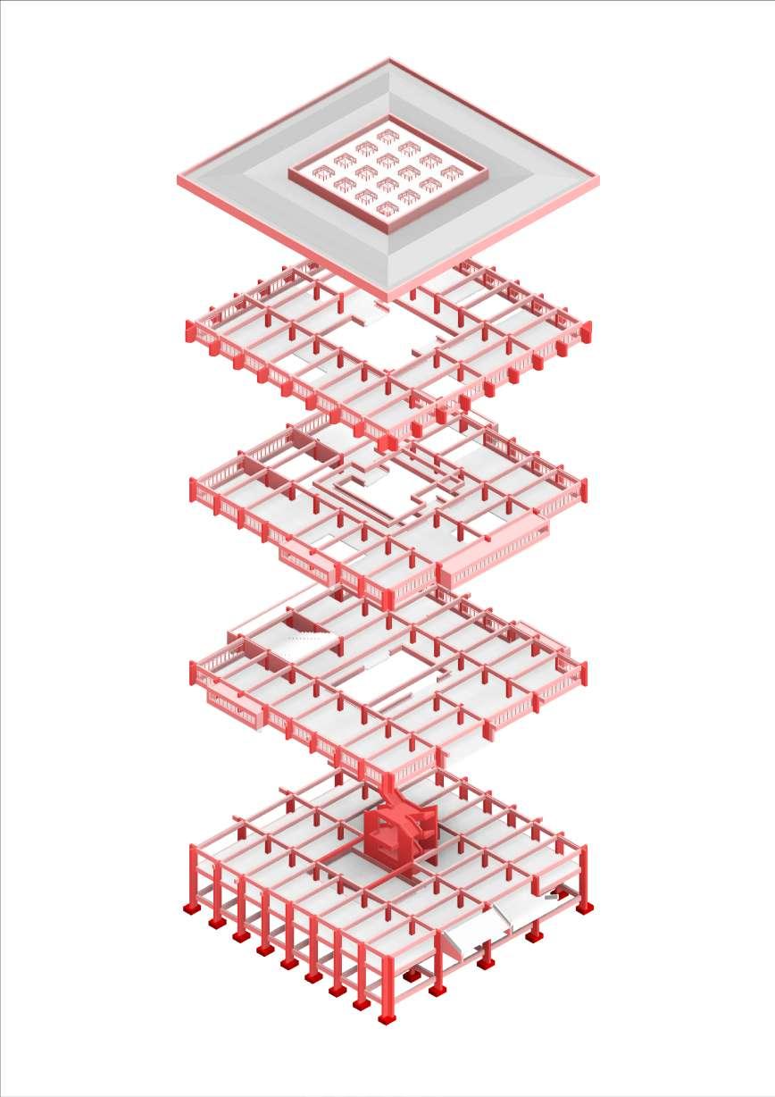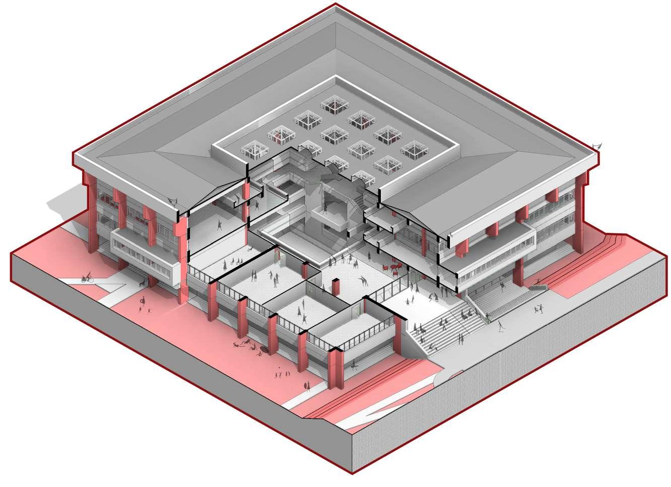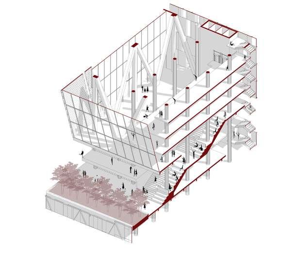 Un proyecto de ciudad vertical organizado por volúmenes horizontales, donde cada una de las plantas tiene relación con las otras por medio de vacíos. Es un conjunto hibrido de programas y forma, cuenta con aulas de clase, talleres una biblioteca, una mediateca, galería, museo, vivienda, coworking, centro cívico y auditorios de gran capacidad. El principio para la proyectación de la manzana fue primero entender lo propio del lugar con el fin de entender sus dinámicas, y así conectar los nodos de los pasajes. También comprender y respetar su contexto y paisaje urbano.