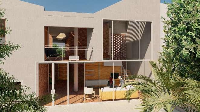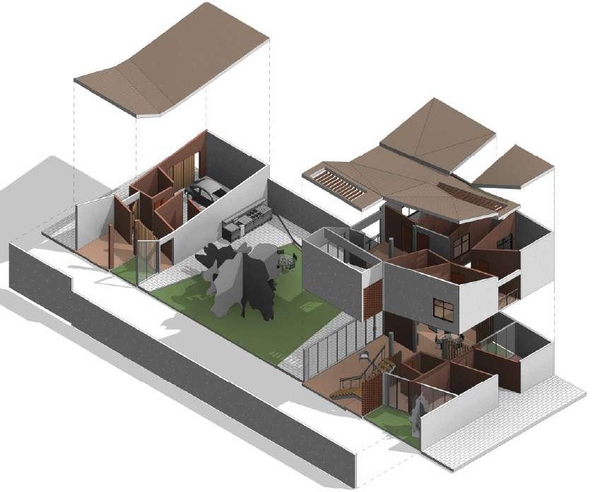 La casa entre medianeras es un proyecto que se propone en el primer semestre de la facultad, cuya maqueta y planos de dicha entrega están a los costados de la página. Por el aprecio que le tengo decidí modelarlo respetando la geometría y diseño que planteé en este taller.