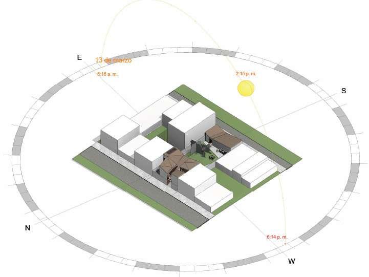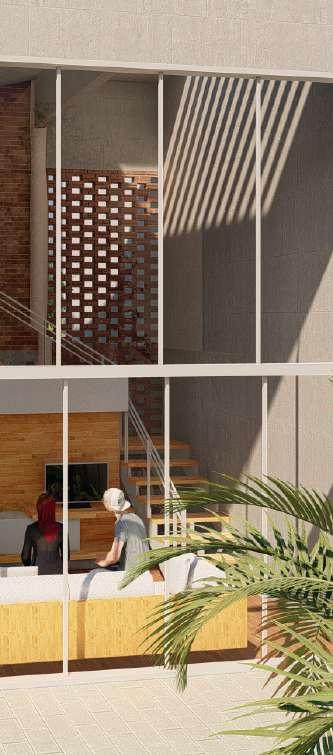 La casa entre medianeras aprovecha su cercanía con otras construcciones similares para integrarse visualmente sin comprometer su diseño. Aunque su superficie construida es excesiva para el programa propuesto, se utiliza para experimentar con soluciones espaciales que conecten las diferentes plantas. Se destina un gran área de jardín que se adapta para garantizar la habitabilidad y la privacidad familiar. El porche en el extremo opuesto del terreno también es crucial, no solo por sus funciones, sino por su impacto visual en el entorno cercano. Se busca dar profundidad al límite trasero para mejorar la concepción visual del espacio exterior.