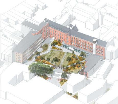 De buitenruimte, die de naam Park Piot kreeg, onderging een metamorfose van een grijze zone tot een groen paradijs dat een actieve, rustige en educatieve zone combineert. Ook enkele waardevolle gevels kwamen weer terug in het zicht. Milo Keunen, stedenbouwkundig architect bij OM/AR architecten, licht het creatieve ontwerp toe. ‘Na de overname werd een masterplan gemaakt om het voormalige kloosterterrein van 5 hectare beter met de school te integreren en klaar te maken voor de uitdagingen van de toekomst.