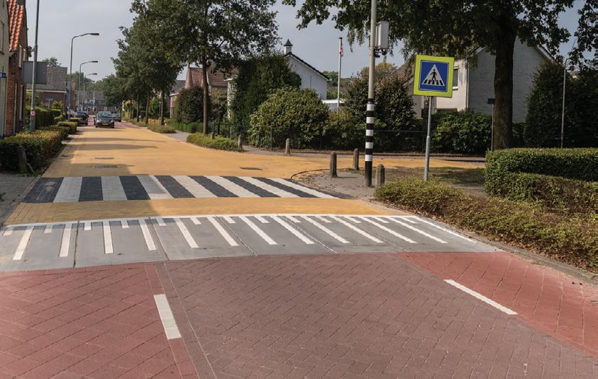 Bij voorkeur korte rechtstanden en verticale snelheidsremmers op overgangen, kruispunten en oversteekplaatsen.