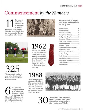 The number of championships won by St. Sebastian’s during the Class of 2014’s time at the School in five different sports including football, lacrosse, golf, skiing and swimming.