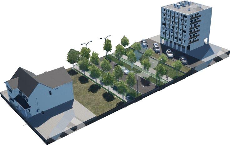 Transitions from a citywide pedestrian system to a suburban one are being formed.