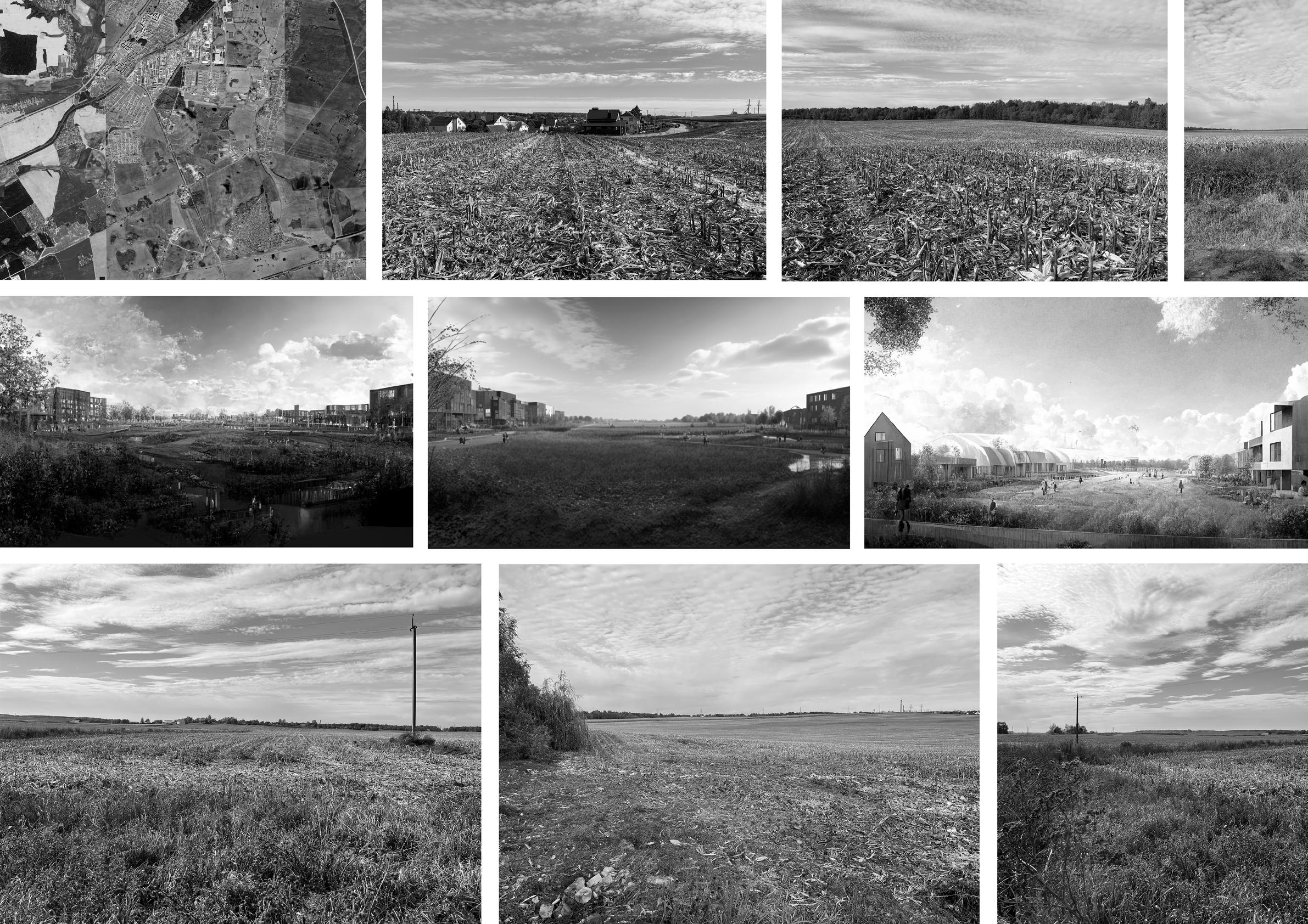 The territory, "sandwiched" between the highway and the railway, fields and channels, is a platform where multiple structures will have to gather.