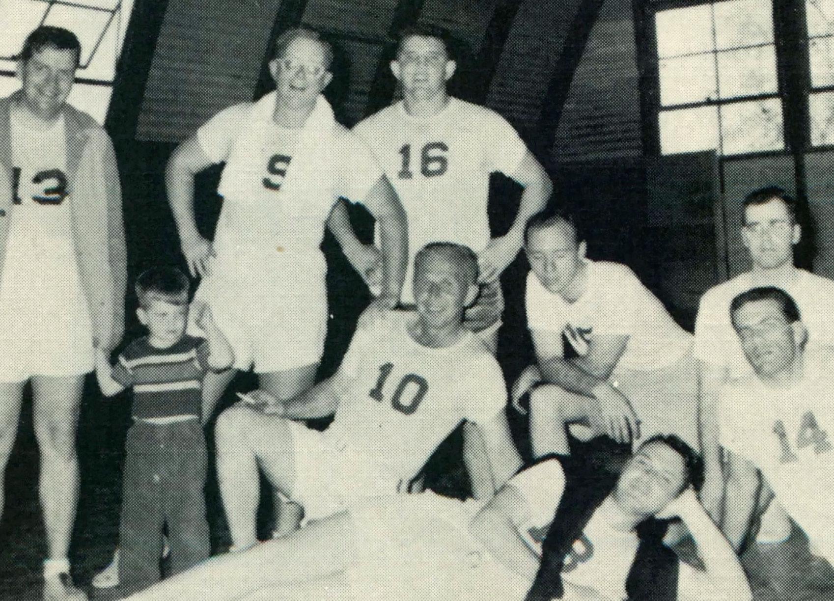 Dr. Laurence Becker (in the middle) at Reunion Weekend 2024, surrounded by Spartans