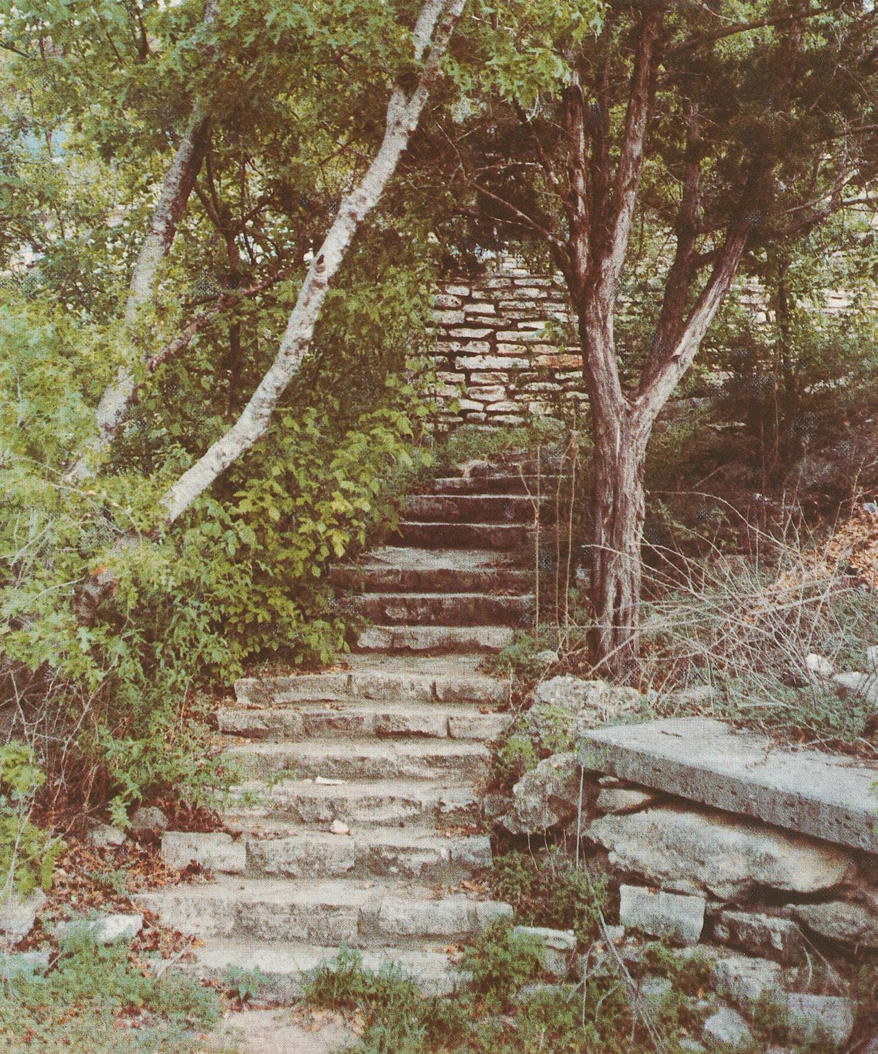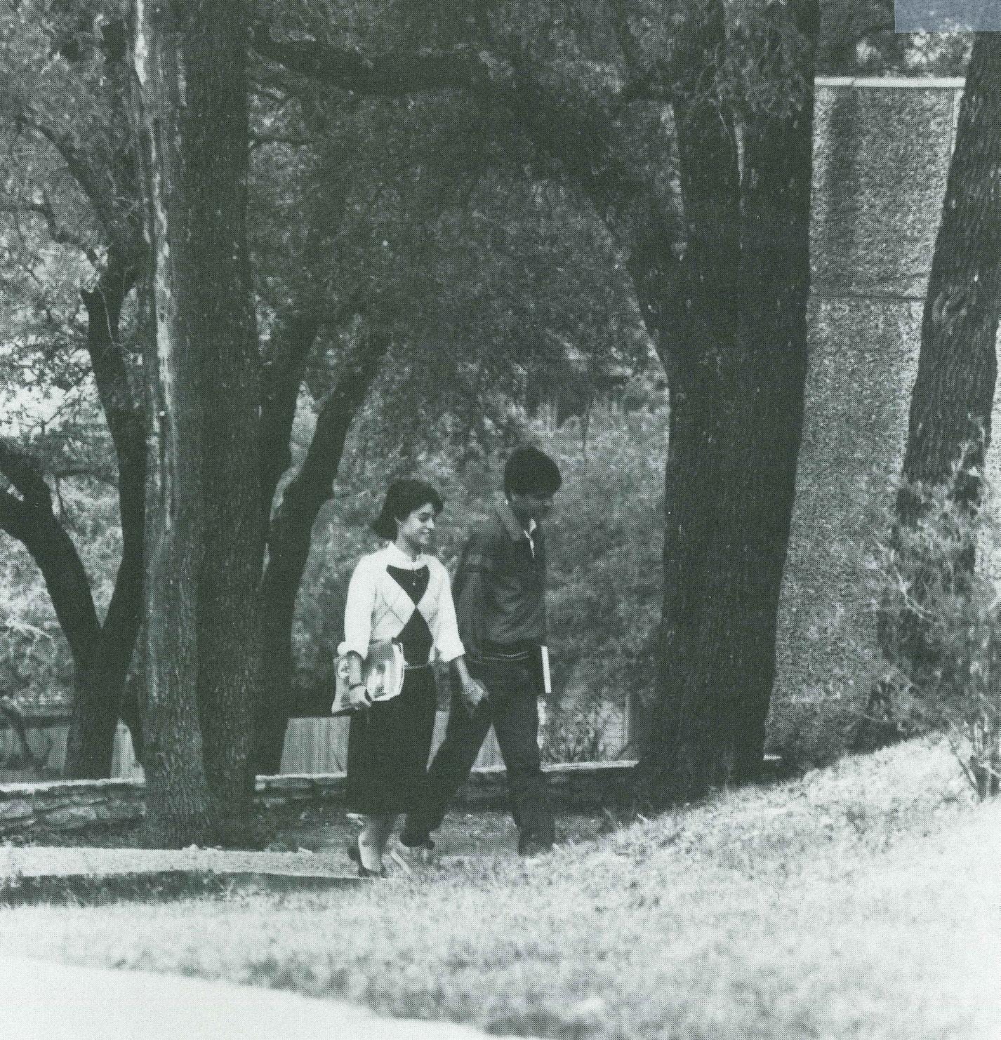 LEFT TO RIGHT: Students walking on campus in 1985; Staircase pictured in 1978