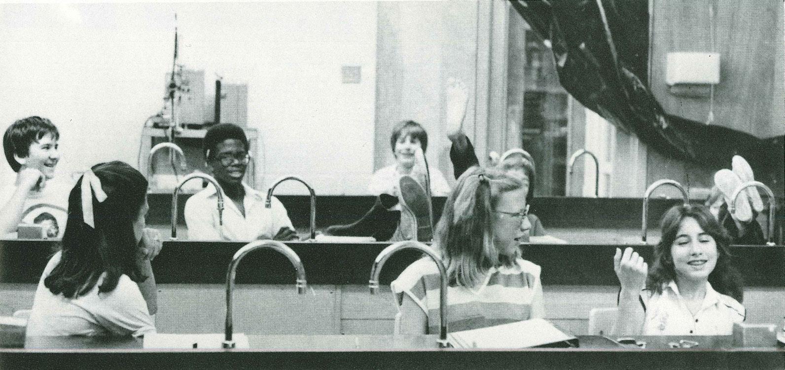 LEFT TO RIGHT: A view of Lake Austin in 1985; Students in a science classroom in 1981