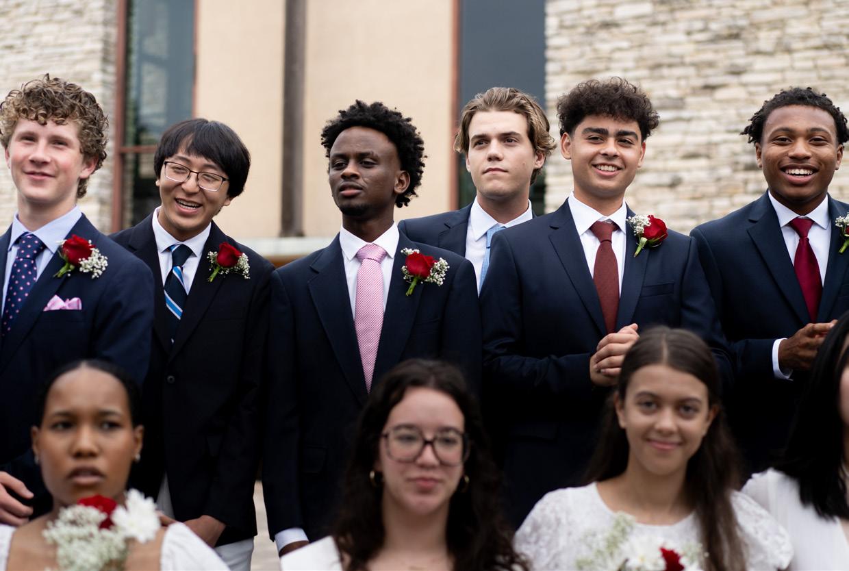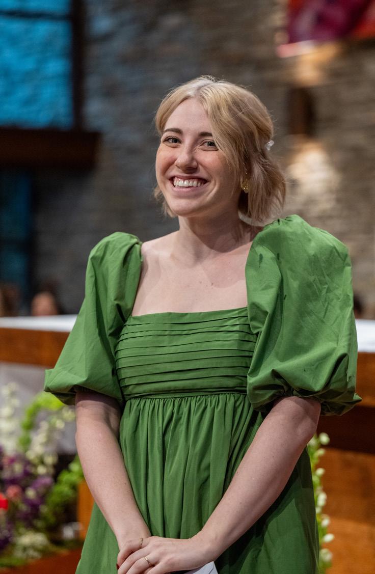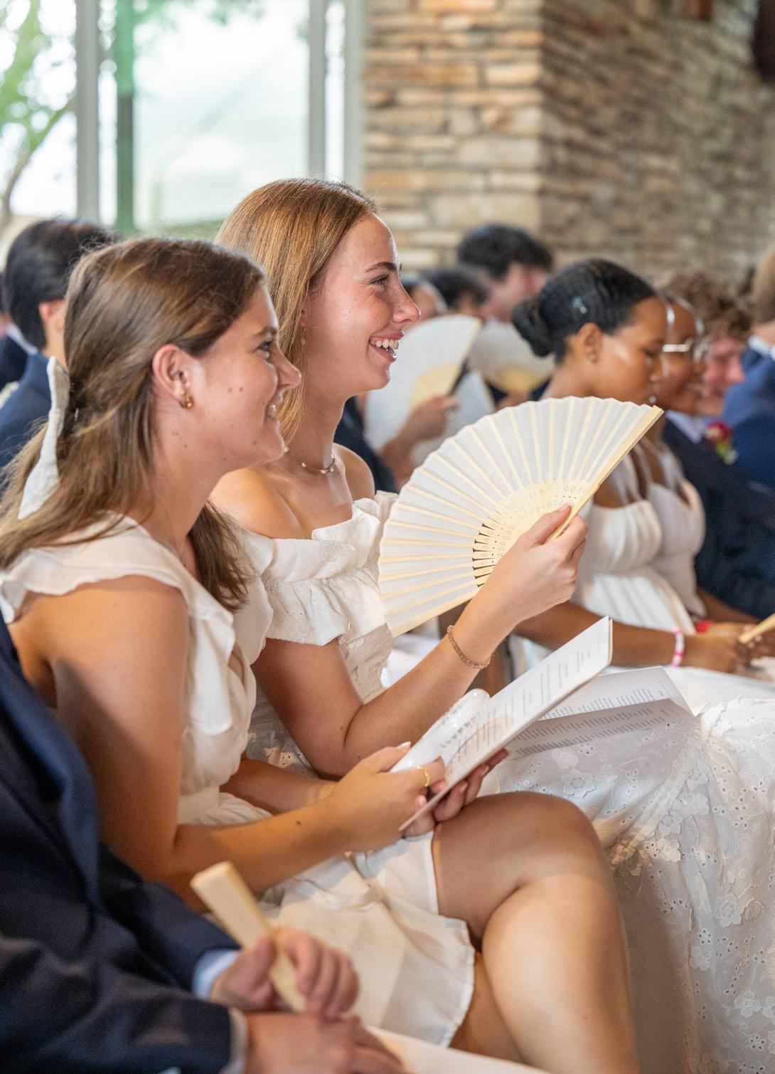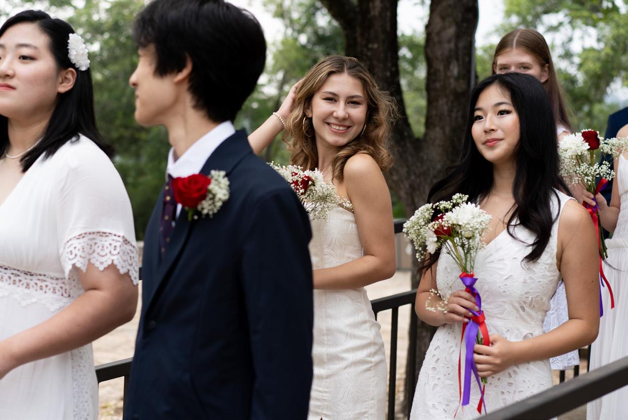 TOP TO BOTTOM : Seniors line up before their procession into the Chapel before the graduation ceremony; Zosia Jankowska ’24 and Amanda Bell ’24