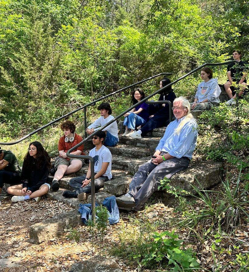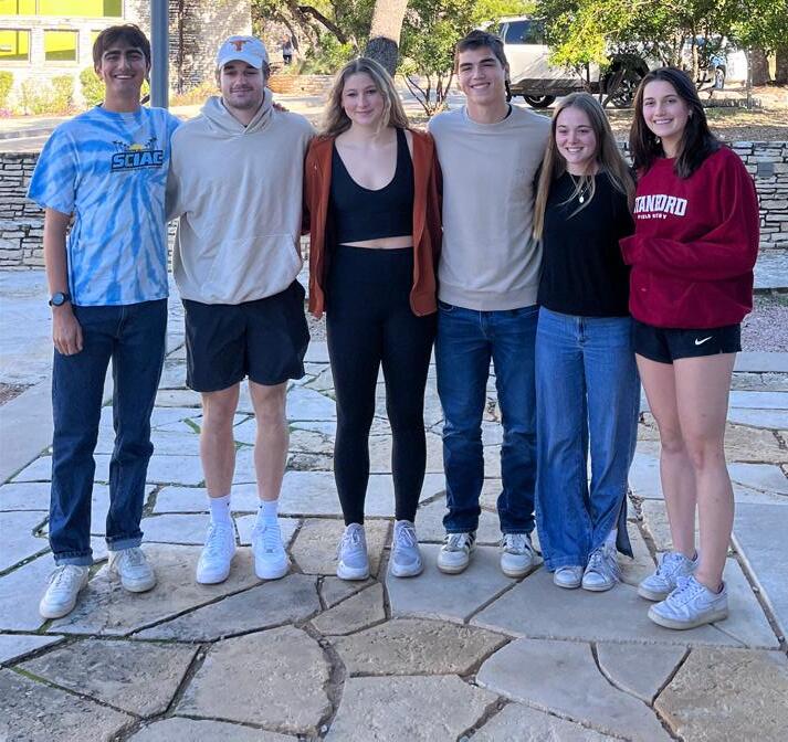 (L to R) Anna Franco ’24, Evy Langdon ’24, Maddie Davenport ’24, Ricardo Montemayor Aguirre ’24, Ben Krauss ’24, Cale Chappelear ’24, Max Lain ’24